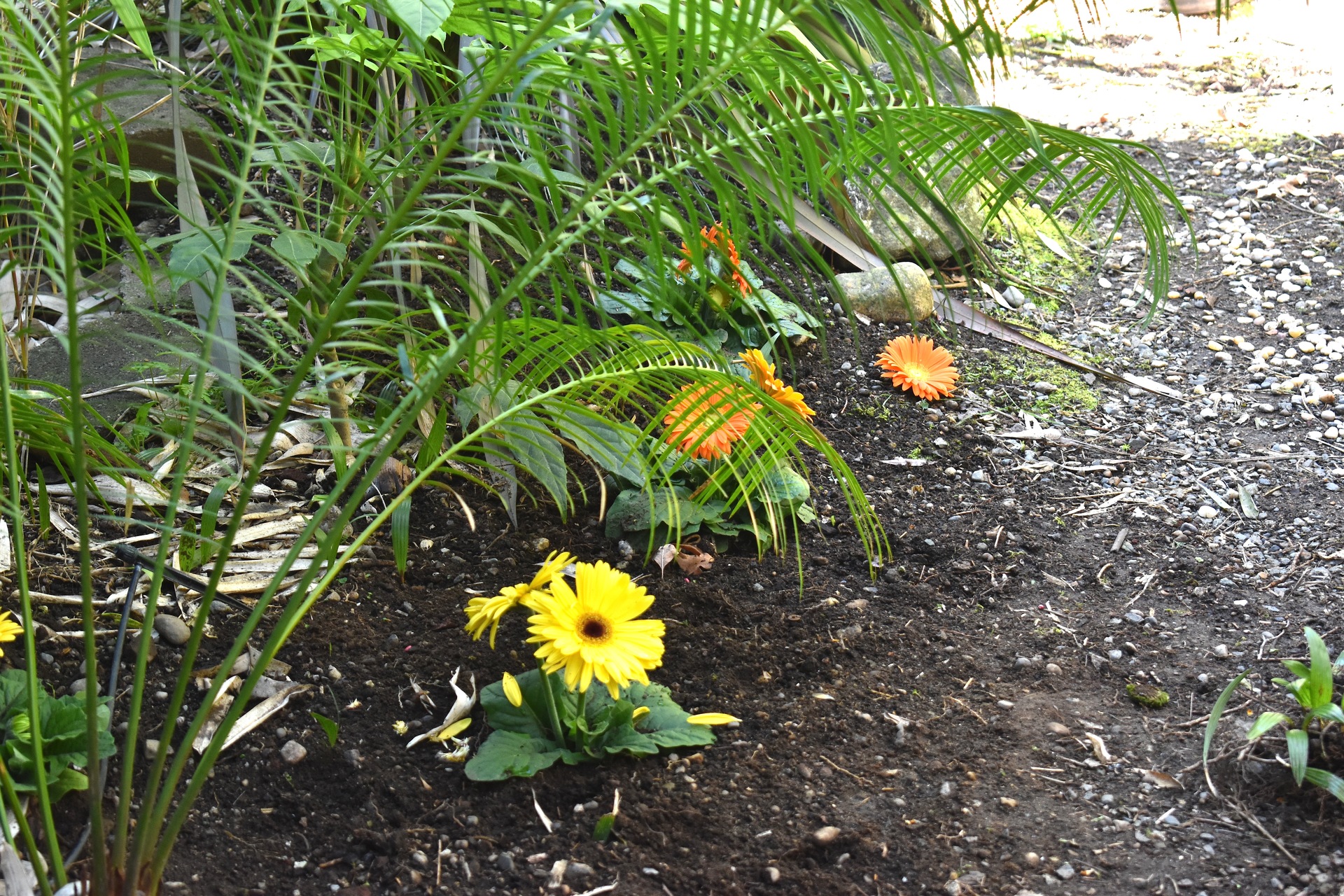 The ones in the sun they don't seem to care for. Those are palm seedlings I dug up in the middle of the pathway.