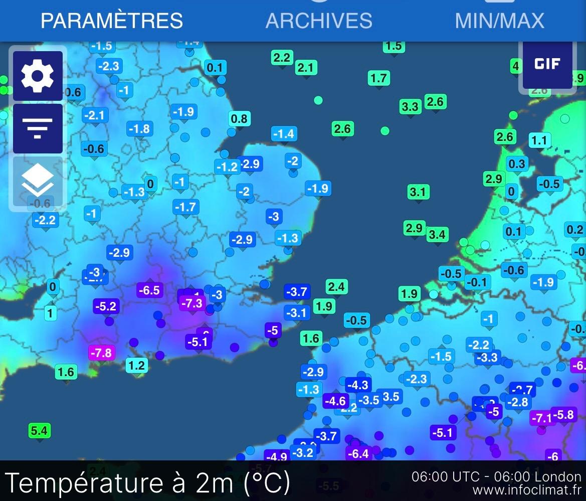 The weather looks awful over there at the moment. It's currently 32f/0c here. Manchester airport is already at -6c. Cornwall is colder than here at the moment with most coastal areas either 0c or at -1c. Margate is doing well because of cloud cover.