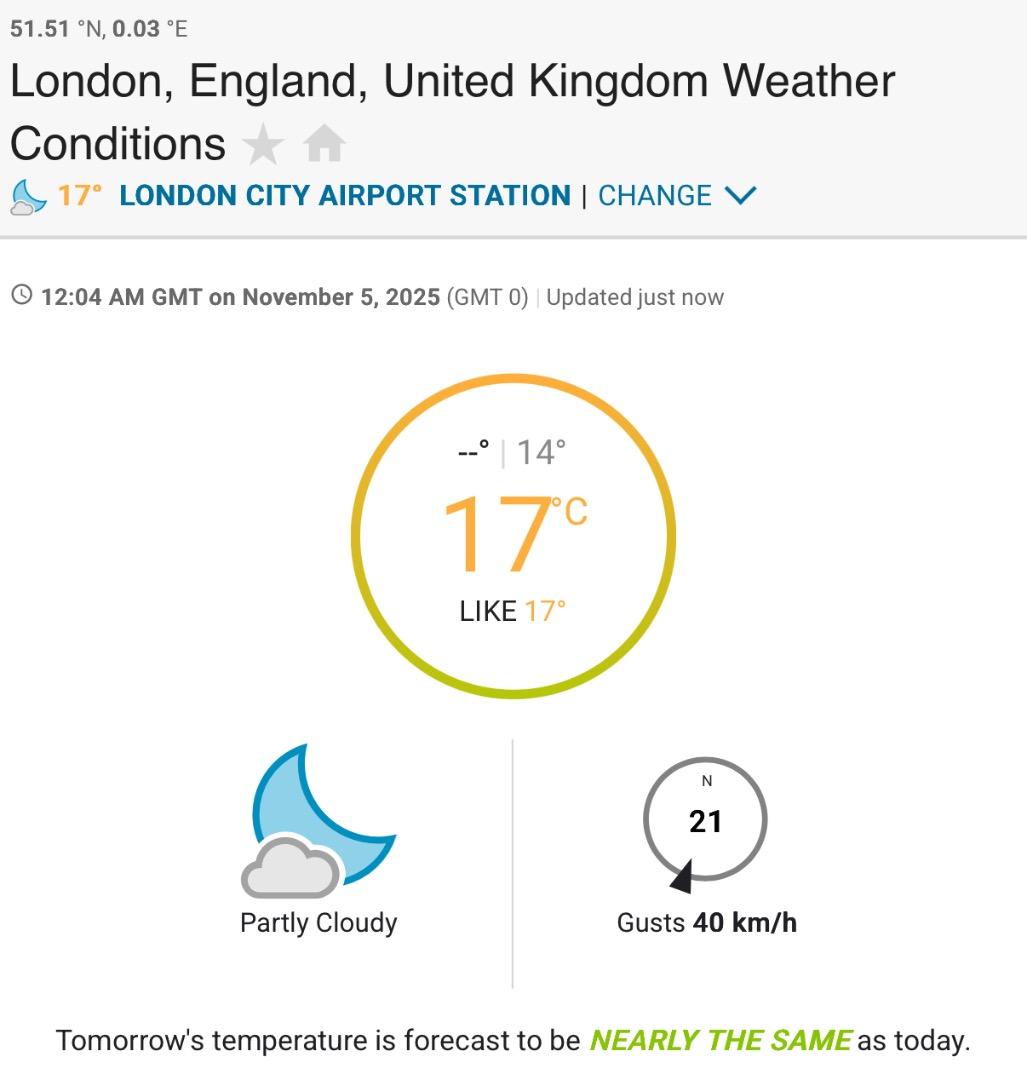 Pushing 17C / 63F at midnight in London tonight…