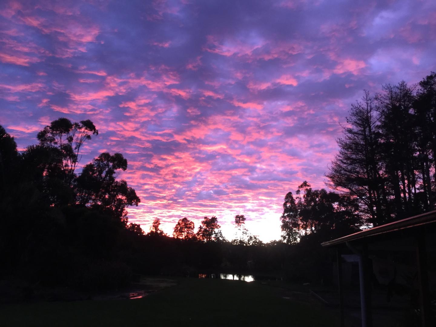 The rough weather is moving in quickly. In reality the clouds are brilliant orange. The picture has come out darker and more pink.
