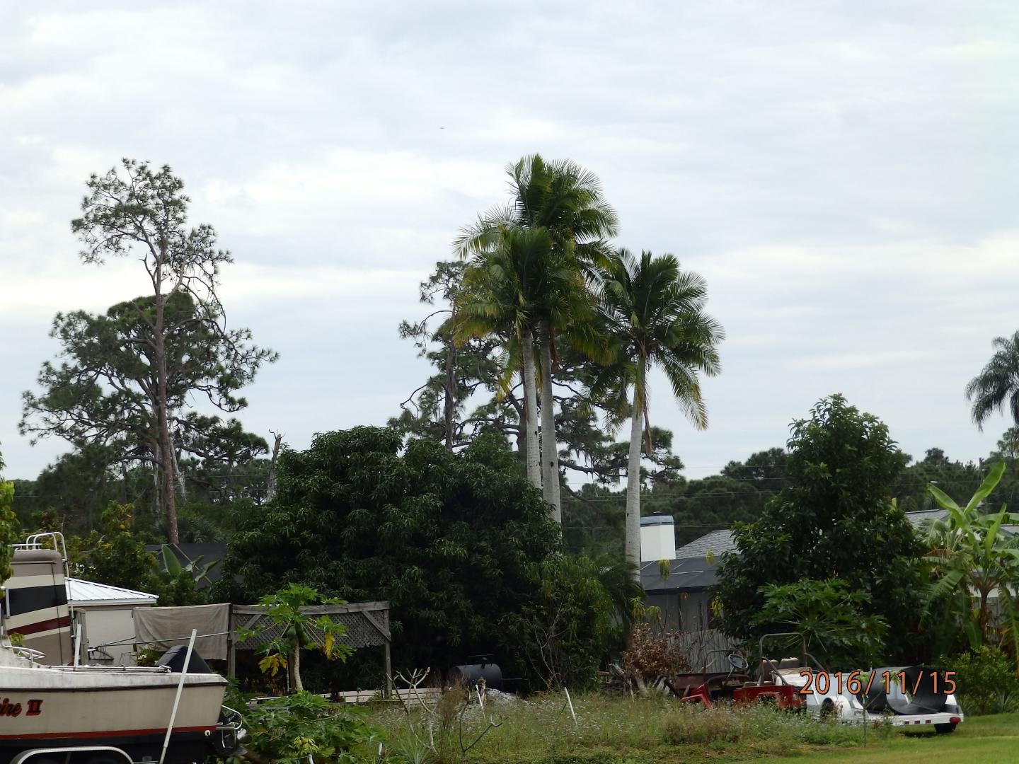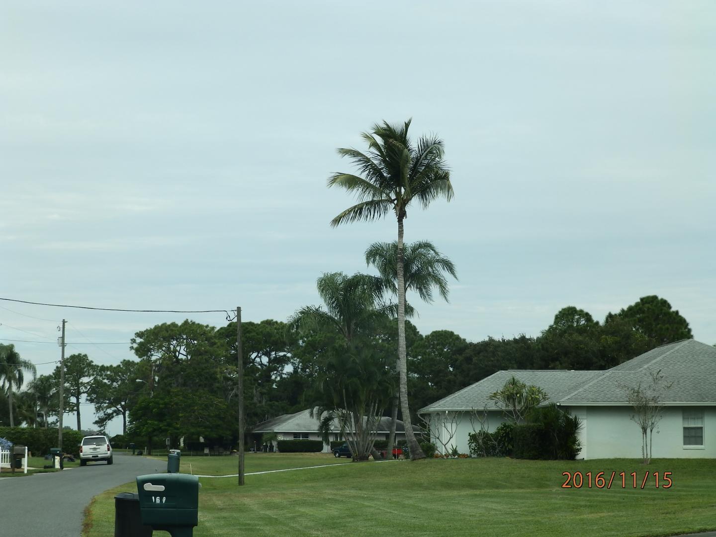 The subdivision these majesty palms are growing in, IMO, is the warmest area in all of Highlands County, as it's situated on the east side of Lake Grassy, and canals to the lake finger into the subdivison on almost every road. All homeowners' back yards are on a canal or the lake front. Coconut palms abound in this subdivision -- like the one in the second photo taken on November 15, 2016..