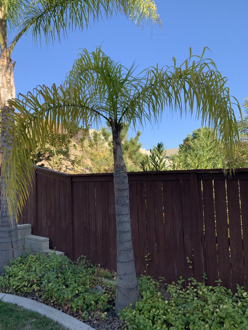 i am in Southern California inland empire so it is quite hot and dry here. But not quite into the dessert yet. We just moved from the Midwest and bought the house with these palm trees. So I know NOTHING about palms... there are about 6 tall queen palm in the front of the house which look healthy and the one here is in the back and smallest of all palms in the yard. There is another taller one next to this small tree which is showing the yellow leaves but not quite as bad. I can’t tell how much water the dripper waters but I will guess not quite enough as I am still learning what is the right amount for my irrigation system as well. There is also the mulch and landscape fabric I mentioned previously which makes me doubt the fertilizer I put down can get to the tree properly. This part of the yard is facing west and get a lot of sun.