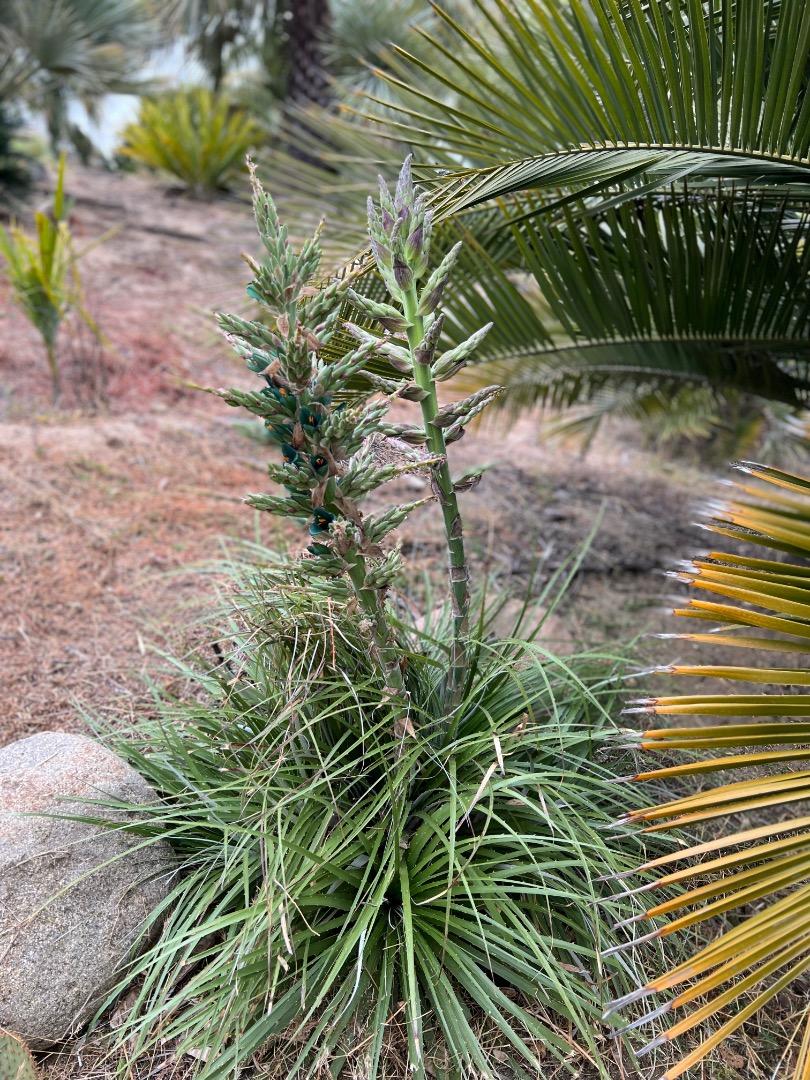 Matt, you will enjoy seeing the interesting color difference between your Puya alpestris and the Puya alpestris subsp. zoellneri .   Get ready for a massive and tall inflorescence that you will need a ladder to get up close to see the top flowers.   Just an aside on the spent stalks, if you can leave them up, the flowers turn into dried seed pods.  I had to remove my last one, which was the one that collapsed under it's own weight and fell into the parking area in front of my house.  On a different species, Puya mirabilis, I have left up the old inflorescence until the seed pods dried out and eventually burst open spilling seed.  I have seed grown volunteer offspring from that now.  If you get offspring from yours, you can put a multi-layer barrier up around your property's edge, starting with Puya and backed up with some Encephalartos horridus as a second line of defense.... better than barbed wire in keeping everything out.