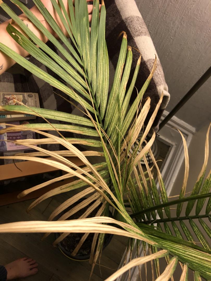 Found this palm on the side of the road - it was used to stage a house and discarded- it’s now inside, humidifier running as I have other tropical plants, and is raised up out of cat reach next to a North facing window due to space