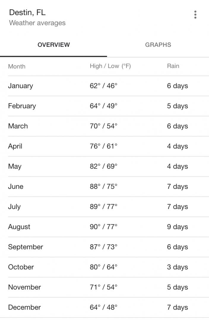 Pensacola (No record for Destin): 5F occurred in January (Period: 1948-2018)