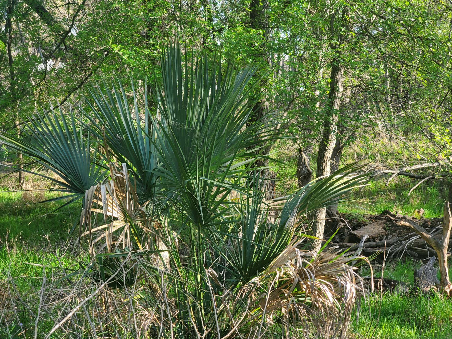 Here is some Sabal sp. love for you.  I went for a bike ride along the Salado Creek Greenway yesterday between the RIM and U.S. 281.  I saw a number of volunteer palms (most of them Sabal sp., but some Washingtonia sp. as well).  The Sabal sp. were mostly east of Walker Ranch Park along the greenway.  There were tons of them all throughout the woods and along the sides of the dry creek bed.  Some were close to the trail, others further in the woods.  All had long petioles and strong costapalmate fronds, so it was highly unlikely that they were Sabal minor.  They have been growing there for quite a while, and I could not find one dead remnant that did not survive the 2021 freeze event.  I assume they are volunteers from residential/commercial plantings around the Northwest side of San Antonio.