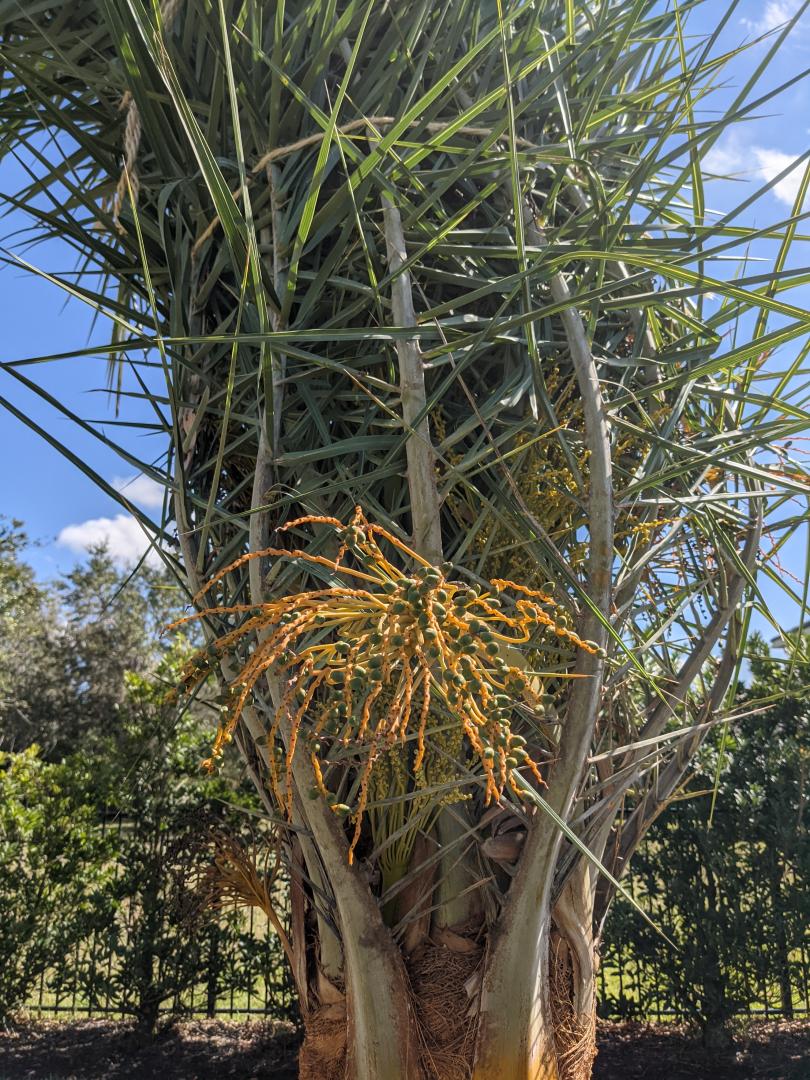 As far as the palm, is the dead fruits normal after transplant?  That is if those are fruits.  I'm just curious why the 2 in my front yard look like the fruits have died but the 2 in the back look healthy.  That is if they are little fruits.