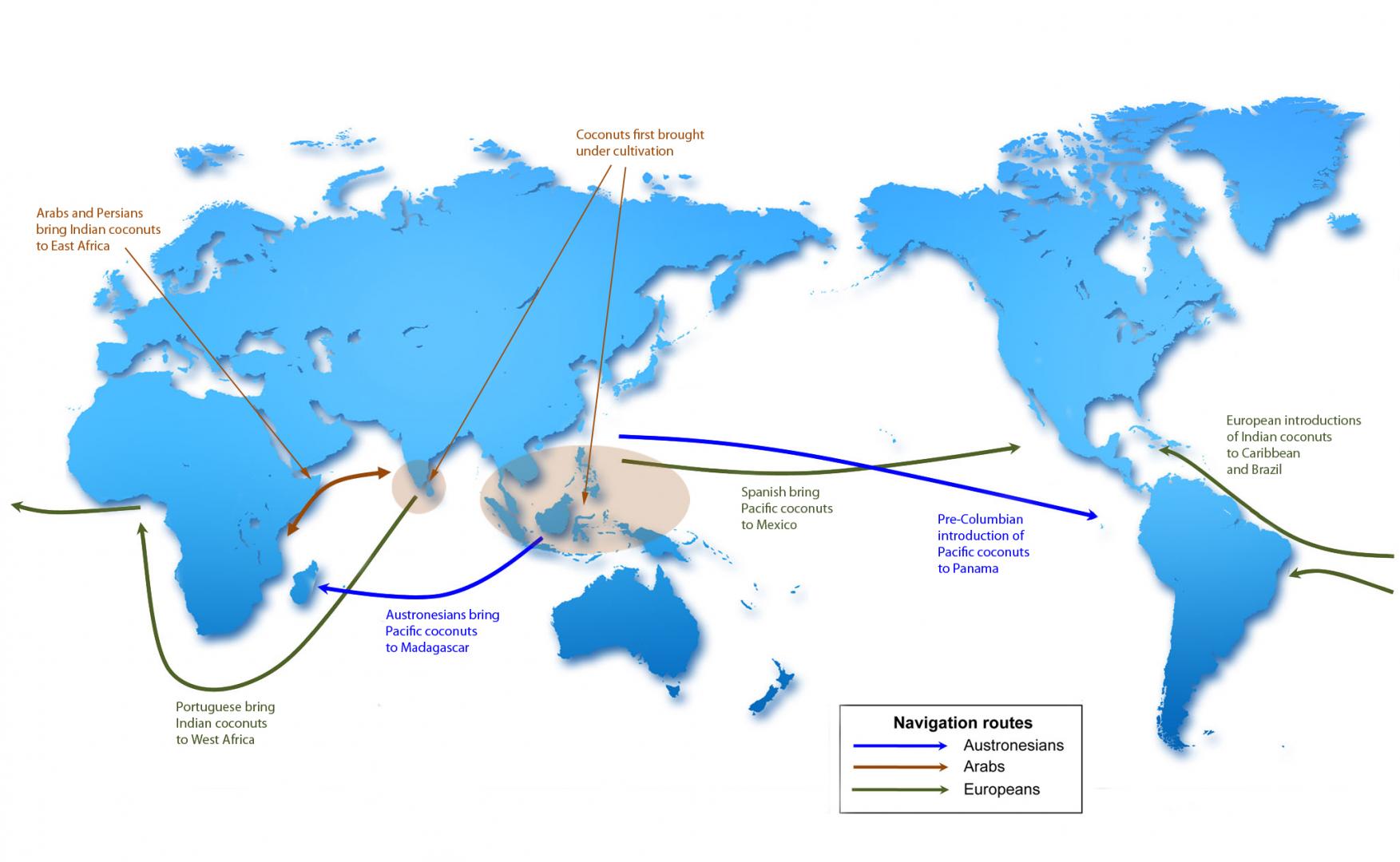 Here is and interesting article about coconut genetics carried out by plant evolutionary biologist Professor Kenneth M. Olsen, Professor Bee F. Gunn and Professor Luc Baudouin regarding coconut genetics.. According to their study, there were two major genetically differentiated coconut tree populations, one in Indian and the Indian ocean basin and the other in the South Pacific basin. The two were dispersed in different parts of the tropical world by travelling humans. The chart shows that the Indian type was dispersed on both sides of tropical Africa and on the Atlantic side of tropical American continents, and the South Pacific type was dispersed on the west coast of tropical America. In Madagascar and nearby areas they found a mixture of both population genetics.  Possibly the Indian type might be more cool tolerant than the Pacific type.  In my experiment, Indian type were most Hardy, Nicaraguan types which are probably a mixture due to East and west tropical American coasts being connected by the Panama canal showed medium cool resistance and the Philippines green variety which are from South Pacific were the most cool sensitive with all of them probably dying in December.  This could also be a lead why Florida, Jamaican and Eastern Mexican coconut varieties are said to be more cool tolerant, possibly due to being on Indian ancestry. Here is a link to the article https://source.wustl.edu/2011/06/deep-history-of-coconuts-decoded/