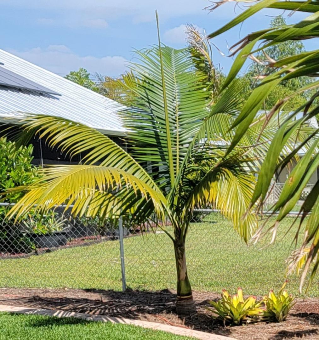 Just to clarify mine are on the east, and southeast side of my house and each is within 5' of a popup sprinkler getting 3x a week for 30 mins from the irrigation system.  They probably see max 4-5 hrs of direct sun early in the day starting with sunrise.  As they grew taller they saw more early afternoon western sun.  They are probably the most water loving palms I have.  They are not in sandy soil, close enough to the house to get 1-2'+ of construction clay on top with a sandy soil layer 2' thick under.  In the dry spring, these, the nearby archies, royals, and chambys get extra rainbird sprinkling.  When the summer rains hit I shut down irrigation if it rains consistently.  It rained a light drizzle most of the day yesterday when these pics were taken.  I treat them like my archies, feed 2x a year with florikan 180 day osmotic release, water liberally.