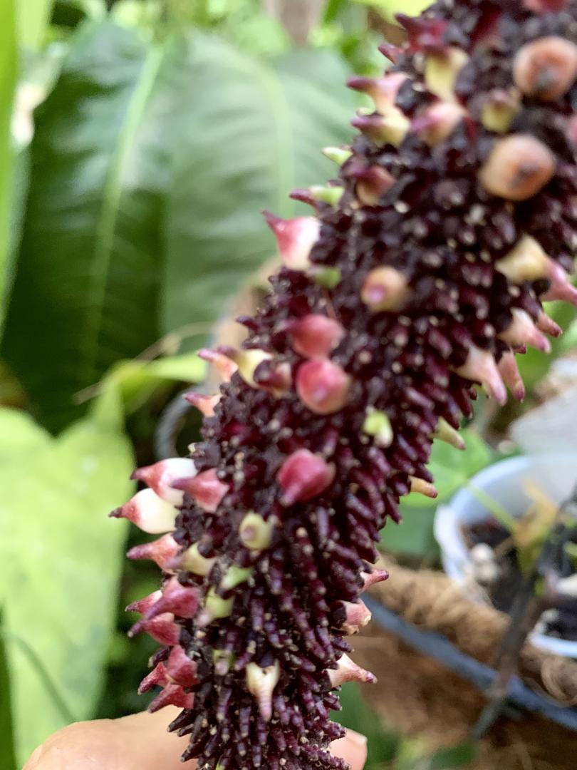 Just found this spadix on A. faustomirandae, apparently I pollinated it but can;t remember what with. Anyone up for a mystery grow out?