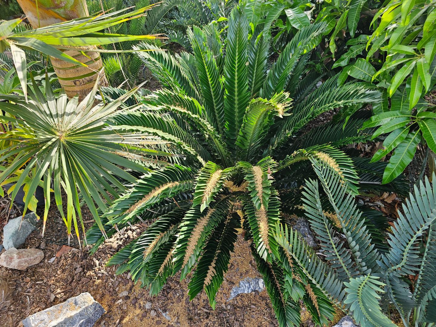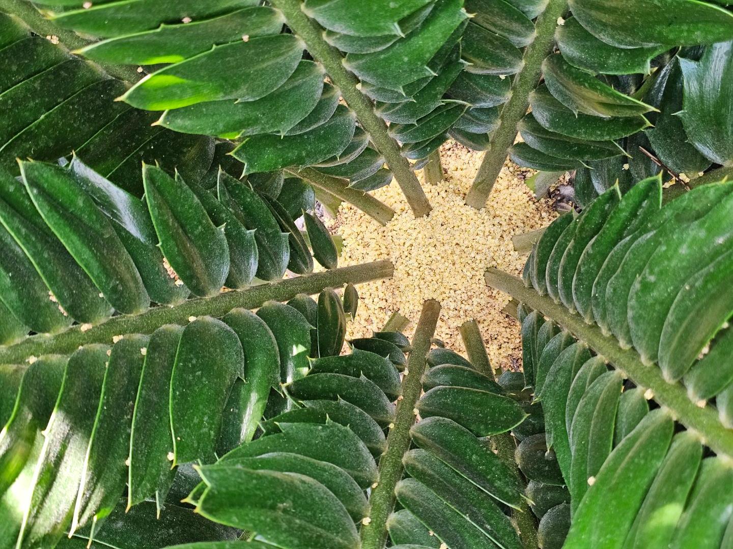 The flowers have been opening, then falling like a light spring shower.  So the shed has drawn my attention to the cycad below it, the victim of the golden showers 🚿