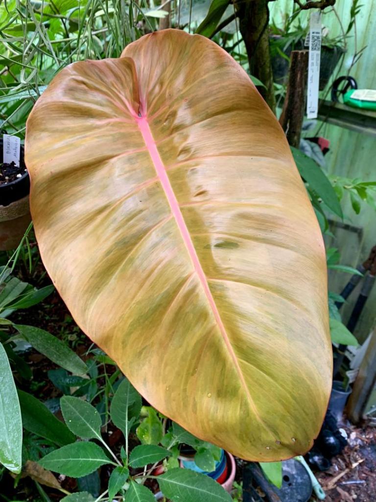 I have philodendron-philia (my new word for someone who suffers from love of philodendrons).  Here in Sacramento, we can grow Thaumatophyllum bipinnatifidum, also known as Philodendron selloum or P. bipinnatifidum, outdoors with a bit of overhead protection, which also keeps the direct sun off of the leaves.  I have a neighbor, a landscape designer, who grows P.  X evansii as a massive plant.  I've been meaning to ask him for a piece of it to propagate, as I have never seen this available for anything approaching an affordable price.