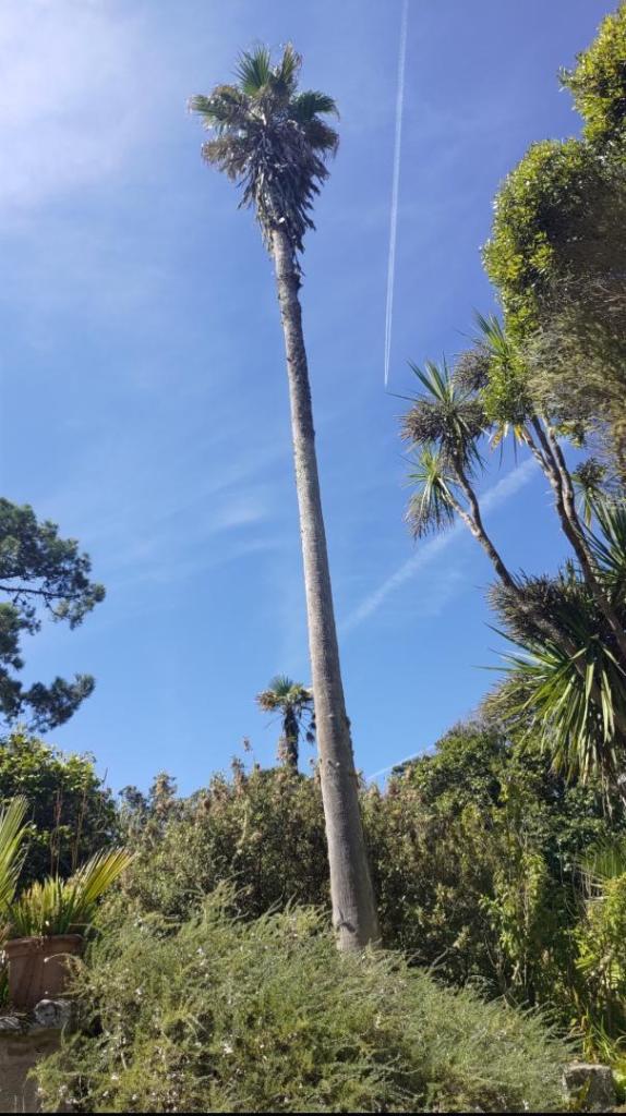 This is the only Kentia I saw, entirely shade grown. I had to wade through thick undergrowth to reach it. I’m not sure why it is looking a bit beat up as I have seen healthy ones on the mainland even in Cornwall. I can’t help but think it would do better with some sunlight, but maybe they are thinking the overhead cover will protect it in the event of a severe freeze like in 1987. The last frost on Tresco was in Feb 2018 I think when it went down to about -1C. So extreme cold is very, very rare there. Even on the mainland at Penzance it only went down to -3C in Feb 2018. Hardly palm killing temps really. The lack of sunlight may be a problem for the Kentia in that spot? The head gardener, Andrew, told me there were a few Kentia’s planted out, not just the one.