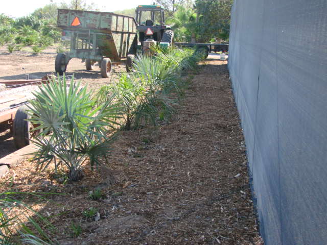 This side, the north side, shady mostly, mildly moist...Serenoa repens various colors,greens, blues, silvers. I didnt have as much rrom to play with on this bed because I have to leave room for the equipment to get through when we irrigate! now just waiting for the new year and the friendly neighbor hood mulch guy :P