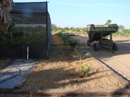another shot of the bismarckias and mule palms on the east side of the big shade house