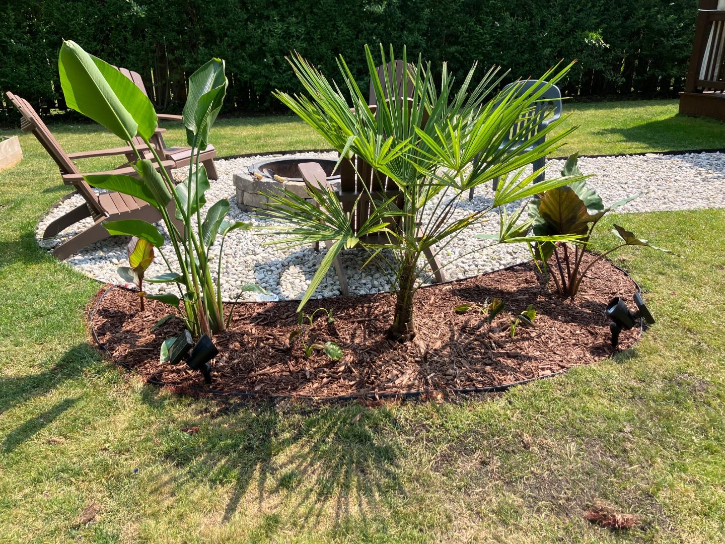 The midwestern heat and humidity can make a palm tree grow fast but out last one was a 3 gallon that was tiny and planted in July, 5-6 inches of growth. But that tiny palm died in February from sever spear pull, hopefully with finally proper protection and a larger more mature and older palm, it should survive, and even it being planted two days ago there is still spear movement, but small amount, but  trying to find time to water it for a large amount of time.