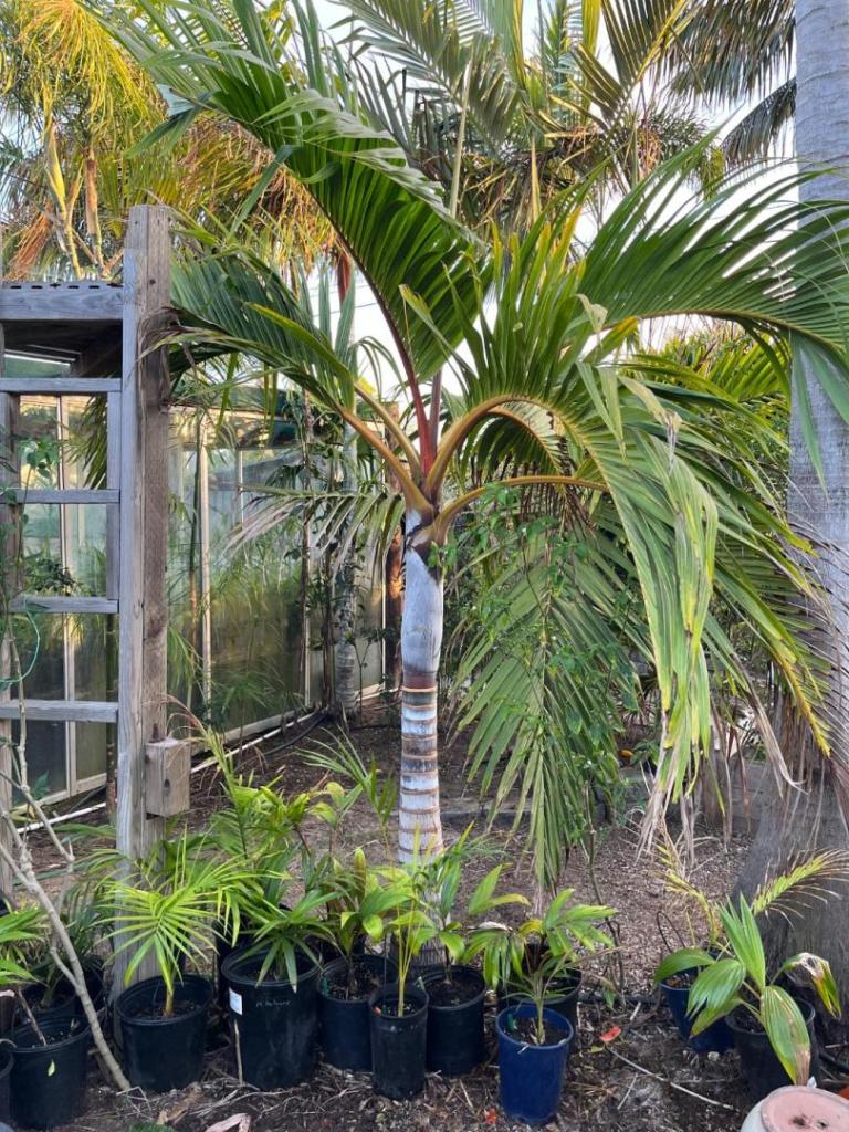 I have three Champagnes, and one (struggling) Bottle palm, so I of course asked if he had a Spindle palm I could buy. Pot # 5 is set aside for me, and I'm excited to complete my Hyophorbe collection!