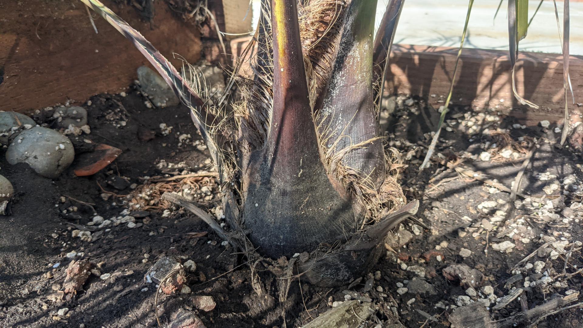 I like to hear more information about the owner of a Mule palm who lost a palm during a freeze.  Were the boots green or chocolate colored ? That would help to only confirm the nursery guy's theory .