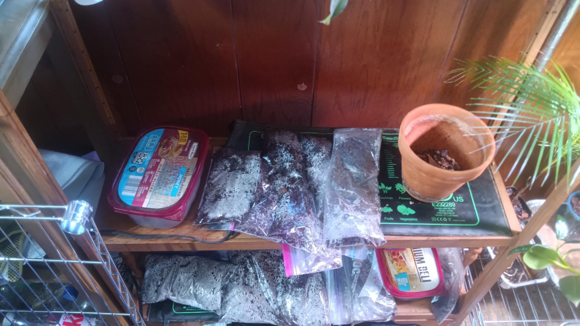 Still have a little room on the heat mat. I still have some seeds y'all have sent me not germinating - I think I've got some Sabal Minors, Brahea, and Nannerops(?) left. I watched a YouTube video of some British dude and he said he occasionally lets his baggies open to breathe, and I've done that once or twice since it really looks like I didn't get enough water out of the coir here.