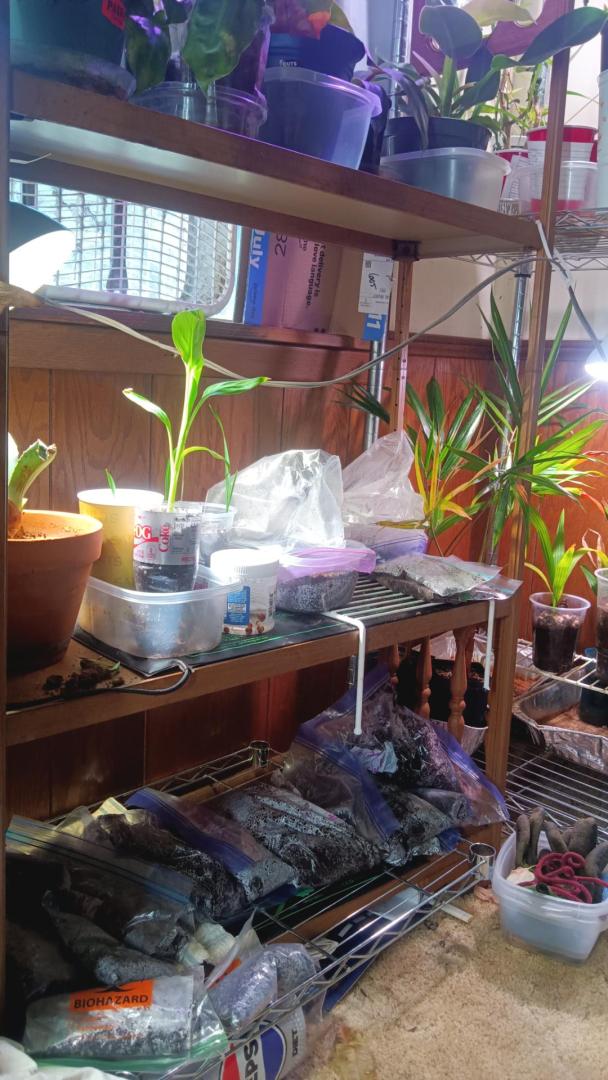 Yeah, I've got just a little bit going lol. There's 20+ baggies, I've got 5 or 6 community pots outside, 2 containers with banana seeds, and I've got banana seeds and canna lily seeds soaking. Oh and some Howea Fosterina on a shelf.