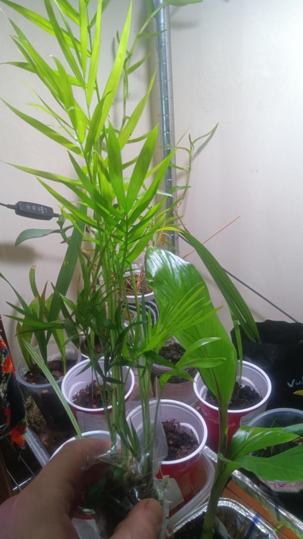 The Wendy's cup came available when I repotted the Fishtail into a 2 liter bottle which tbh might not have been enough vertically. Sure it's got room to spread its roots out more, it had just about filled that giant cup up, but it's still staked since it was leaning so bad because it had outgrown the 3 foot of vertical space it had in the Palm Condo™.