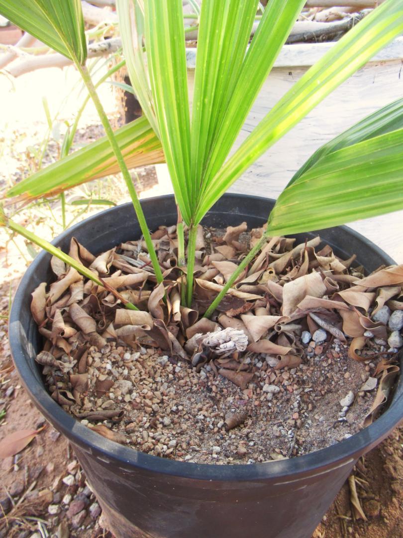 Other nurseries, growing rare, rainforest-type stuff seem to plant their palms in a small amount of rich soil, but mixed with mostly fine bark or wood chips mixed with perlite.  This soil seems to break down and burn out in a little over a year, at which point they need repotting.  It’s a more acidic, richer, wetter mix, but still seems to work well for those types of palms that naturally grow under those conditions.