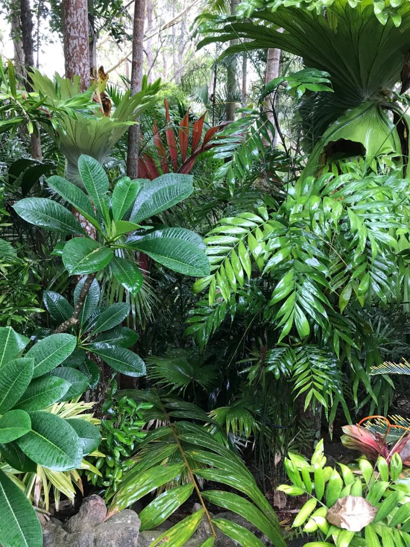 I tried to find an elkhorn fern since 1990 when I moved to Qld. I used to see them on trees in paddocks or garden but the shops only ever have the other kind. Platycerium Bifurcata, with the long fronds. I bought a few over the years labelled as elkhorn but they always turned out to be the ordinary things. A few months back at a local plant fair I finally found one after all these years. It was very tiny and quite pricey but it is growing like mad and will soon be big like yours. My bitch list follows ... my orchids never flower, my Cycas revolata is 20 years old, still small and always dead ends on the leaflets, proteas die before I finish planting them, I don't get gorgeous king parrots here at all, just pretty finches and a bunch of ordinary found everywhere birds. Everytime I plant any kind of ginger they go feral and take over the place and it takes years to get rid of them. The 5th photo down (I think), the one after the picture of the Rhapis and the Bismarck. What is the palm that looks like it has fronds all the way down the trunk ? Looks lovely in the photo. You can keep the rotten scrub turkey. So many gardens around here are nearly destroyed by them in a few hours. Very destructive things.  In the photo of the inedible turkey is a plant in the bottom right corner, wide leaves, what is that please ?