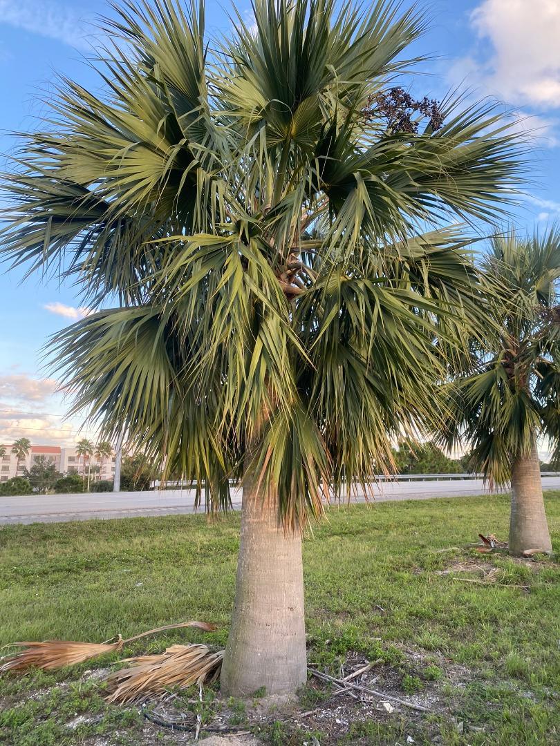 Sabal palmetto on the right, Sabal causiarum on the left. Took this picture today in Ft. Pierce FL, just west of I-95. They look completely different when viewed side by side. I'd wager the palmetto is at least 3x older than the causiarum.