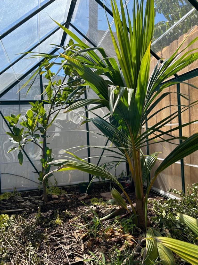 - I recently got a greenhouse which experiences much hotter daytime temps and have moved all the potted cocos in there but I haven’t seen any improvements however. Maybe if they were older they’d appreciate it more.