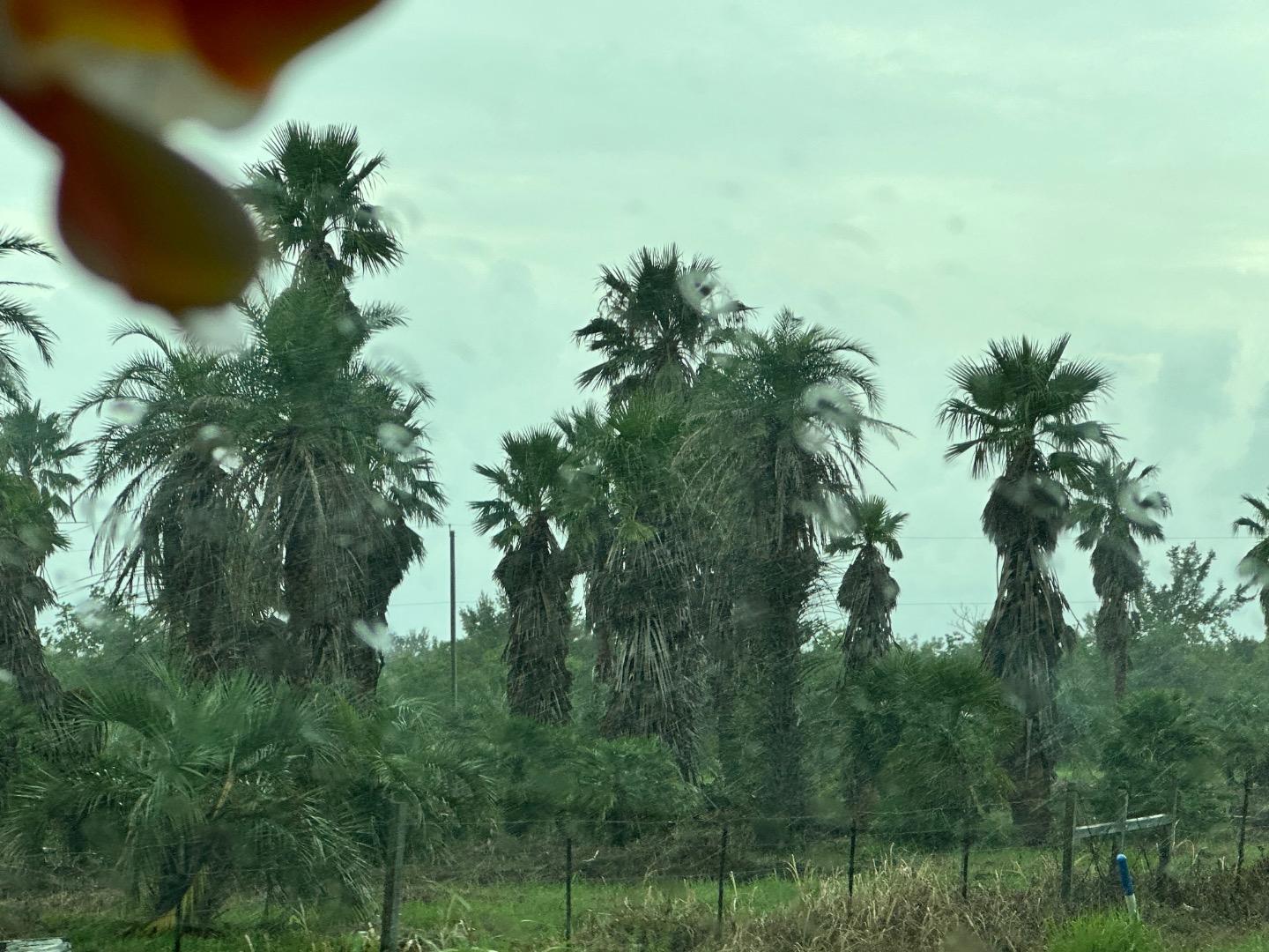 Kinda blurry due to it raining at the time of these pics but the palm tree farm in Alvin /manvel faired pretty well I don’t see any that snapped in half here .