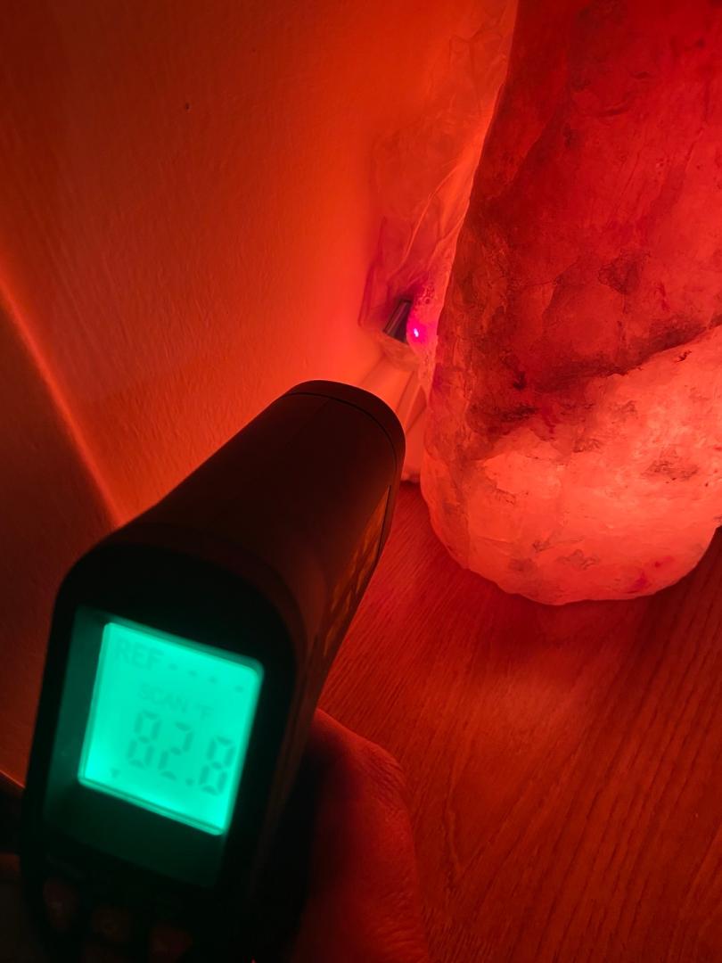So salt lamp has constant 87-88f and the seeds bag placed between the wall and the lamp has 83f, the radiator when on reaches 140f for few hours a day