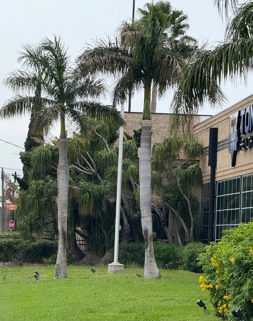 The 1 remaining Washingtonia hybrid at the downtown Dallas hooters is beginning to push green again after being defoliated by 13F about a month ago. Meanwhile a Filifera a few blocks away looks unscathed. I’m sure it will look acceptable again by Memorial Day