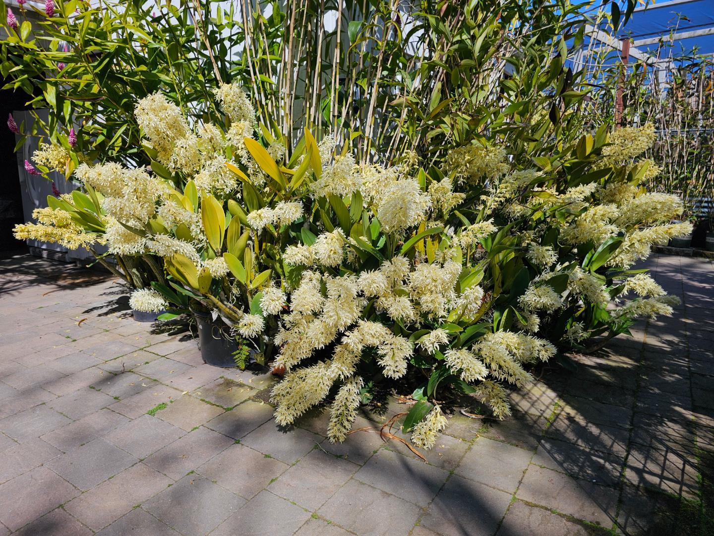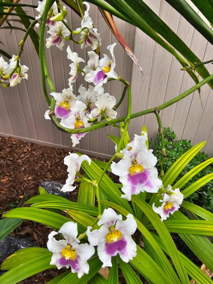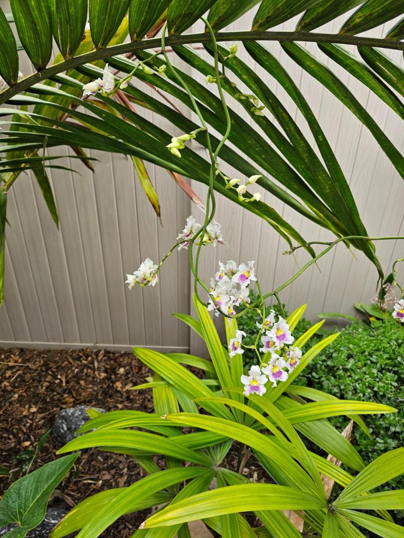 This is my tallest orchid (besides the vanilla which is currently climbing higher on my P. elegans).  Top of wood fence is 6'4" off the ground.