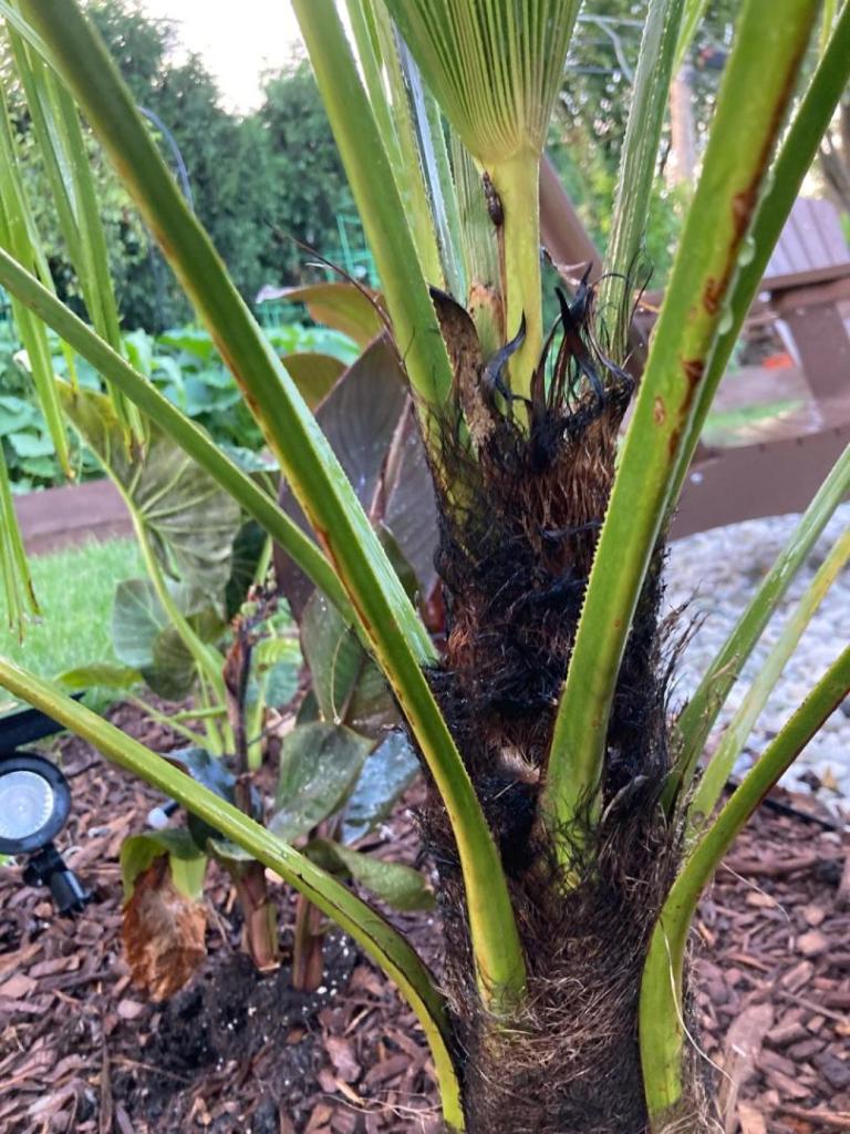 A ember from our fire pit landed on the trunk and started burning the fibers. There is visible damage on the fibers but I don’t know if the palm tree is damaged. Any concerns? I did put it out with water the mini fire.