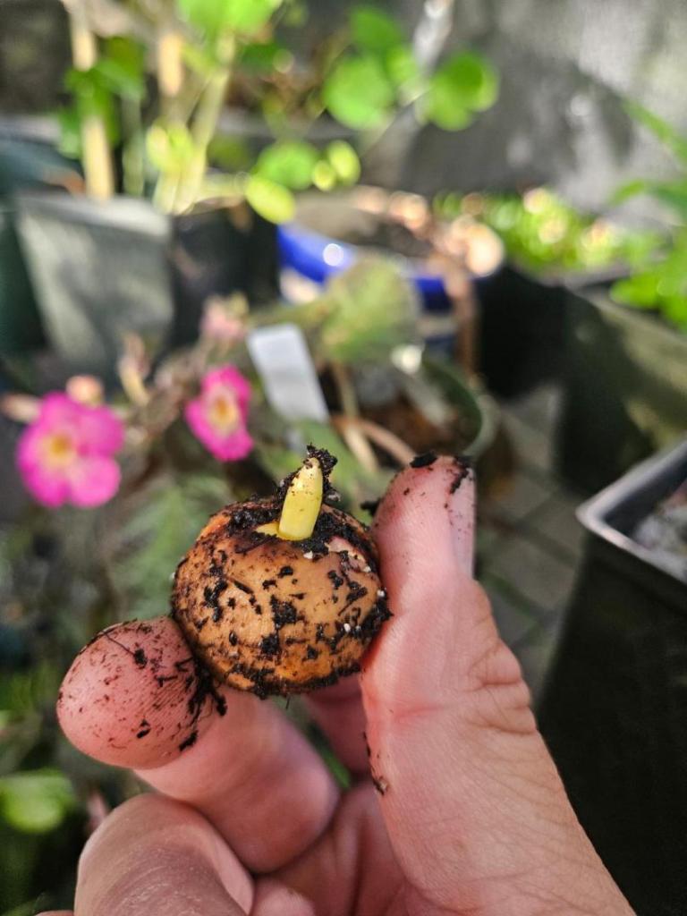 First sprout in Arizona, USA!  This blue species is soon to become a worldwide phenomenon. That's how you go about helping to preserve a rare and desirable species from extinction... Spread the seeds around in different climates,and there will always be some original genetic material to work with if extinction ever becomes an issue.👍 Thanks for making these available,and helping to insure the survival of the species.