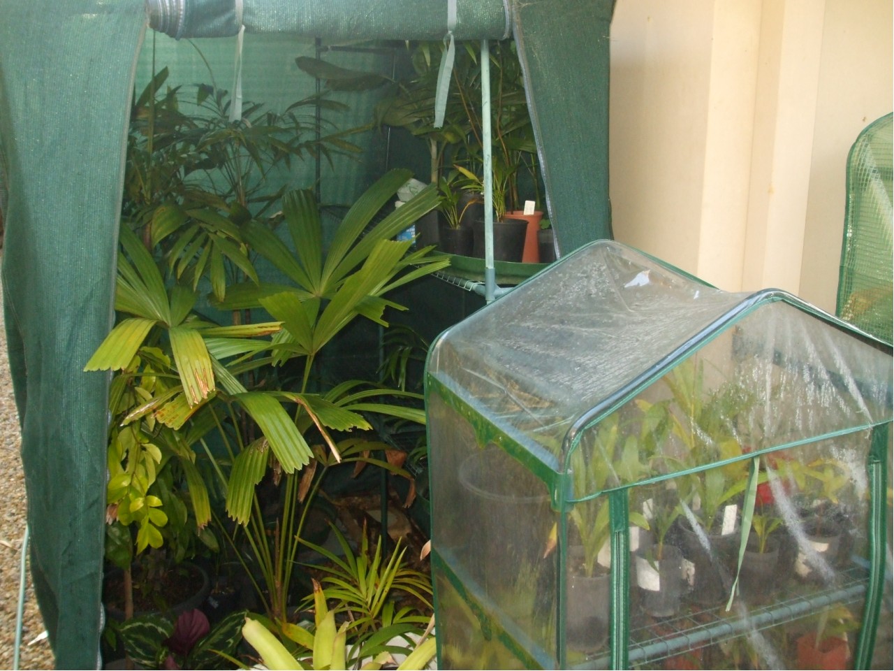 Right rear area has a train smash of wonderful varieties, including a massive hopei cycad.