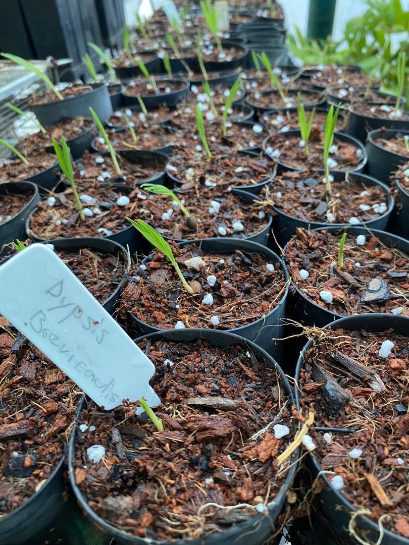 The best thing for baby palms and plants is seaweed emulsion. If you can water with it 2 to 1 ratio with 2 fertiliser and 1 water in summer using the recommended amount on the labeling or less if you prefer good warm weather is a great advantage for fertilising. Don’t fertiliser in winter and remember a little goes a long way. My  experience with fertiliser got of to a bad start with palms try killing a hundred marojejya darinii using the wrong fertiliser recipe devastating to do. Now I only use liquid seaweed emulsion,  fish emulsion and liquid blood and bone. Basically treat them hydroponically but you need to know your soil  mix water holding capacity. Good drainage is the key you have to tune your soil in good it’s a learning curve.