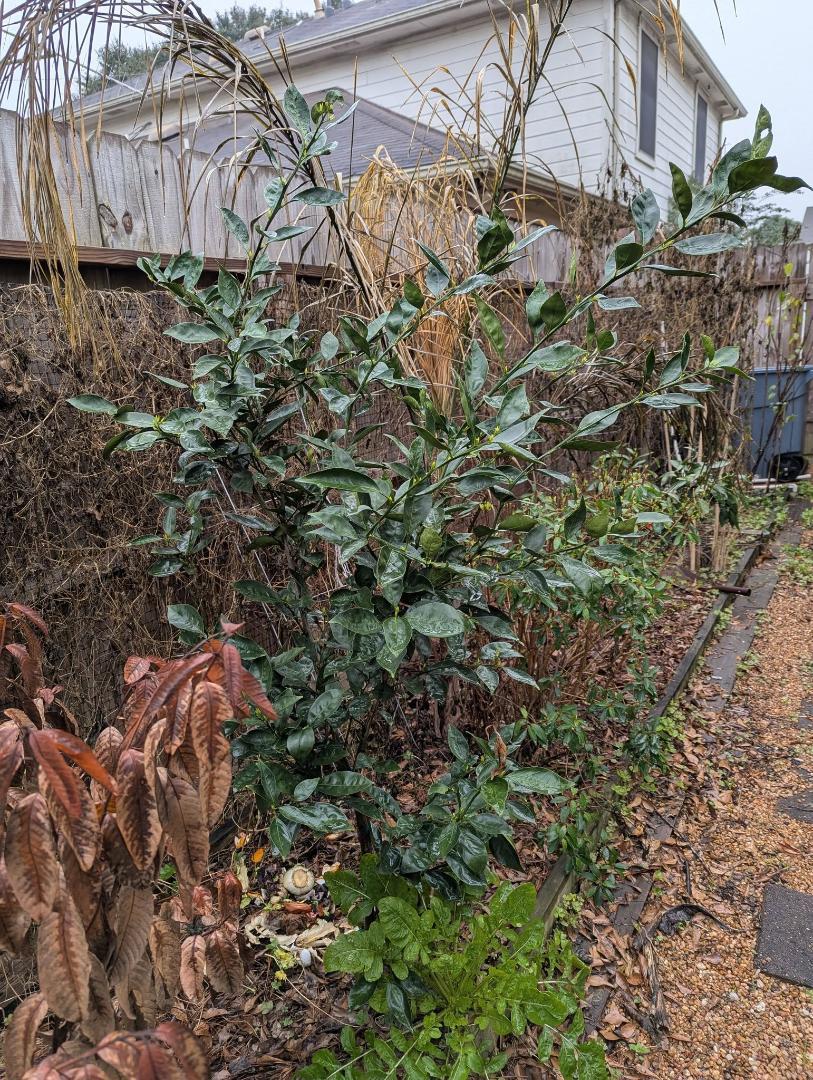 Alle 10 meiner ungeschützten Zitrusbäume sind am Leben und die meisten von ihnen verzeichnen einen enormen Wachstumsschub. Ich habe Satsumas, Mandarinen, Pampelmusen, Orangen usw. Meiner Meinung nach sind Zitrusfrüchte hier immer noch die beste Wahl. Einige der Pfirsiche, die extrem wenig Kälte vertragen, sind ok. Ich werde hier keine 20 Zitrusbilder posten, aber hier sind ein paar Highlights: (Sie können auf diesen Bildern auch einige Königinnen sehen, die endlich knusprig geworden sind, die Mitte ist ganz grün und drückt)