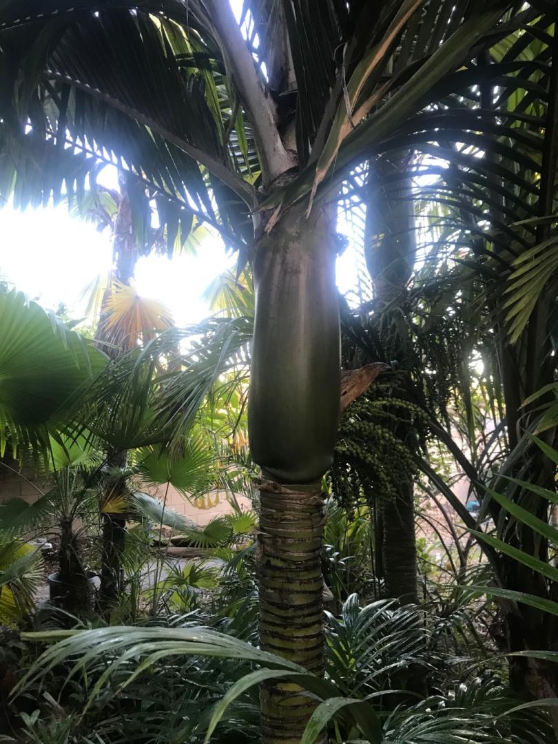 Just curious , is this the Rhop. Bauri or Sapida? I lost a 20 year old Sapida due to summer heat in that area of my yard . It did very well ( got huge) until a few consecutive  heat waves threw it into a tail spin. I recently planted a R. Bauri because I heard they can take a bit more heat. The one I got from @DoomsDave is labeled Cheesmania which , I believe , refers to coloring of the crown shaft. Still young so I have no idea. Because of my last experience , I planted it on the west side of my house where there is shade from some mature palms and cooler afternoon westerly winds. Harry