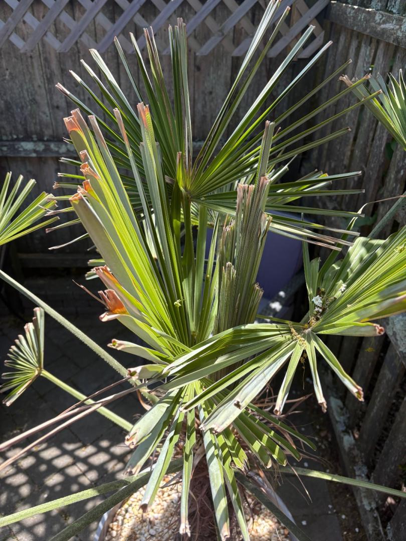 I’ve had this windmill potted for 3 years and store it in a collapsible greenhouse over the winter. There’s usually no issues from season to season. This year, it LOOKED like it was doing well all winter until I uncovered them this spring. The palms looked dried/fried, yellowing, and folding inwards. There is new growth, but not much movement in the last month. No spear pull. Any suggestions as to what is happening ?