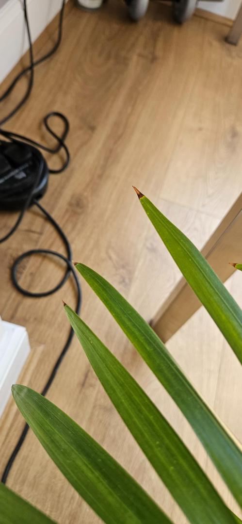 Hi, I have a Kentia Palm plant in a well draining pot, which is placed inside a decorative pot. I'm not entirely sure why, but it has been leaning for a really long time now and has some drooping leaves.