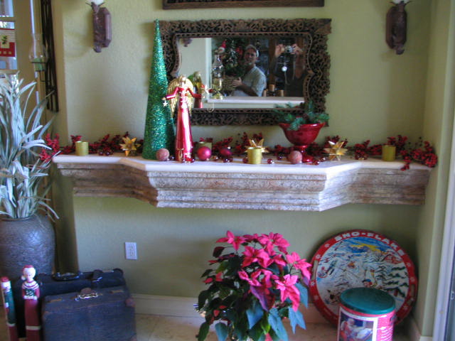 I just noticed two things,well really one. Andrea was taking the picture but caught my reflection through the mirror. Also, we collect a few antiques, and down on the floor on the right side, I bought that snow sledge, or disc, or what ever you call that thing. :D  Hey, I was born and raised in South Florida, what do I know about sledging? But when I saw it in a store, I thought it was really cool to have.