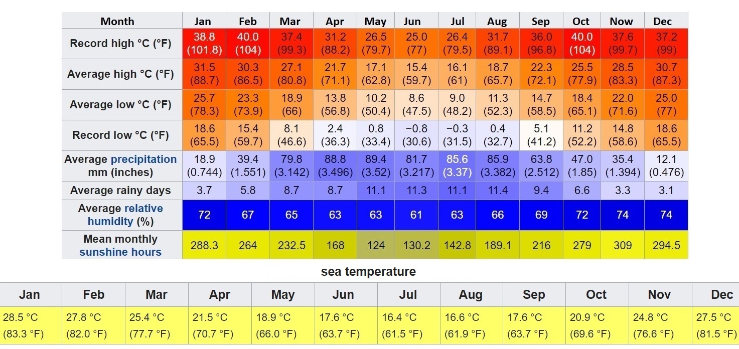 It comes down to averages I guess, Miami and Florida have averages in the 20's. It also only rarely sees temps below 10c.