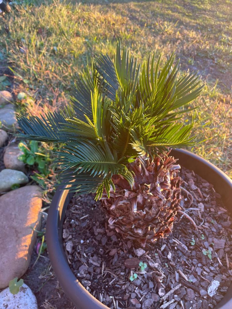 Well, an unexpected but pleasant surprise yesterday. I bought a Sago from Walmart in April 2024 for $20. It did very well last year, but then we got hit with some nasty cold and that destroyed its growth. I pruned off the dead growth sometime in February 2025, and waited. And waited. And waited some more. June arrives, still nothing. So I put it back in its original nursery pot with some old soil and and forgot about it. Yesterday, I was mowing around the shed and noticed something different about the Sago...it is finally sending out new growth!