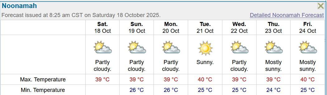 Here is the updated forecast. 30C on Friday. Here comes the tiger snakes. There’s already been one spotted by the neighbours and I’ve been madly trying to remove the weeds and wild oats which are growing while you watch them, so snakes don’t feel safe just hanging out around the place.