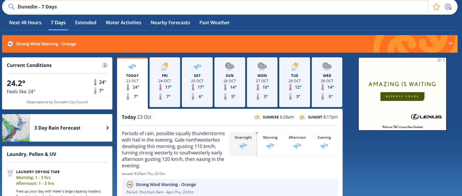 Don't like BOM's online new format for the weather forecast. Funnily, it gives a "7 day forecast" only showing 6 days.