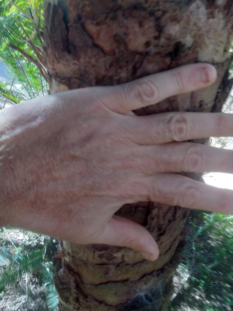 This is one that I got as a 25 gallon box push pushing 20 years ago. I’ve always guessed that it was relatively “pure”, as it maintained fairly narrow trunks. My friend got one from the same grower that was clearly crossed with canariensis,  and just turned out to be a monster. It obviously wants to suck her a lot, but I do my best to keep it whacked down to a half a dozen stems. It’s topping out it 6 to 7 m and puts out just a ton of growth pretty much year-round. Although I’m not sure I’d put in another one, as this one went in pretty early in my palm journey, but they are lovely palms. Except the spines, could do without those.