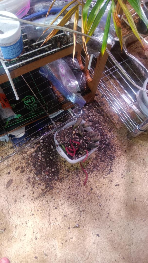 Welp whoopsie doodle. I had these Butia sitting in the Palm Condo™ and had planned to pot them up at some point before planting them out in spring. Welp (using that a lot in this post), I'm trying to take pics for y'all and knocked them over. So I guess it's a good thing I bought 2 clearance pots at the dollar store today, time to go get a drill bit and pot these up. My bootleg football stream is buffering like crazy anyway. And bonus! There's another nub in here! IMG_20250922_204218.thumb.jpg.e76dce7ae5cad66f9cac1965b1391c33.jpgIMG_20250922_204247.thumb.jpg.c7ac4cd6ec2c77aafbb9b41d3442b974.jpg