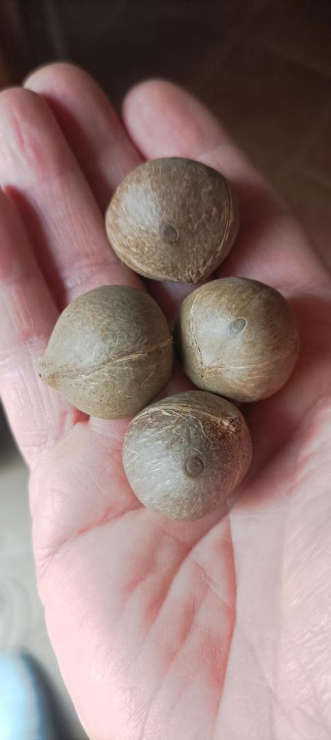 Many years ago I was given a packet of edible, shelled seeds that were labelled 'mini coconuts', and I've long wondered what they were. They did indeed taste like coconut and were very nice. They looked very much like these, so perhaps they were actually Jubaeas.