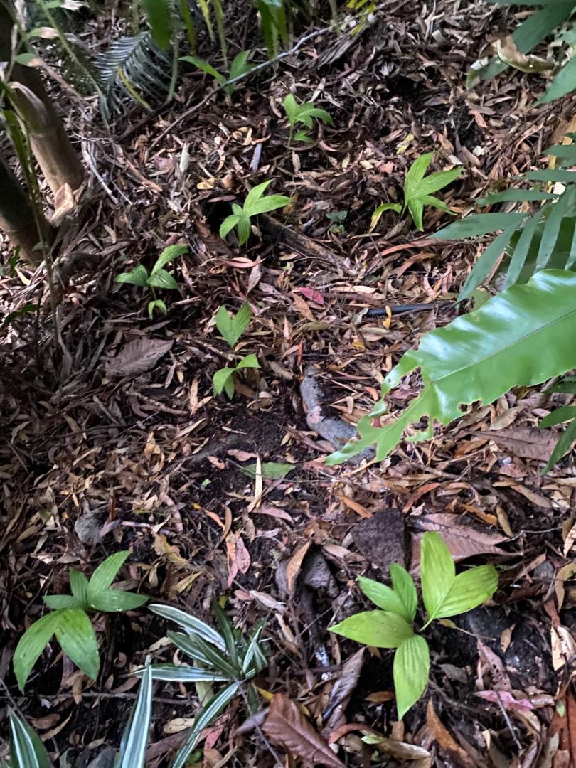 We all love our Ernie’s here in palm land. So why not a little group of say ten for of a bit of seed production, along with getting the garden a bit more tropical looking. No special treatment with this lot bring out the pick axe for this planting. Theres usually a reason why theres a gap in the garden, the reason is rocks and lots of them, so wherever I could drive the pick axe in that’s where they got planted. A thin layer of well composted mulch almost like rainforest soil. All I have to do is water and lots of it. So this little group shall be called gyuseppes patch!